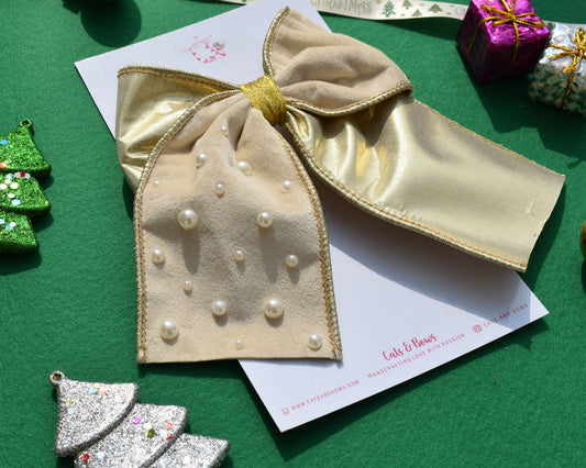 Velvet Ribbon Bow- Cremé