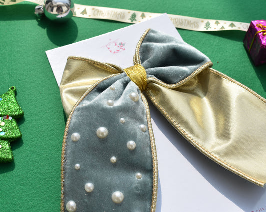 Velvet Ribbon Bow- Icy Grey