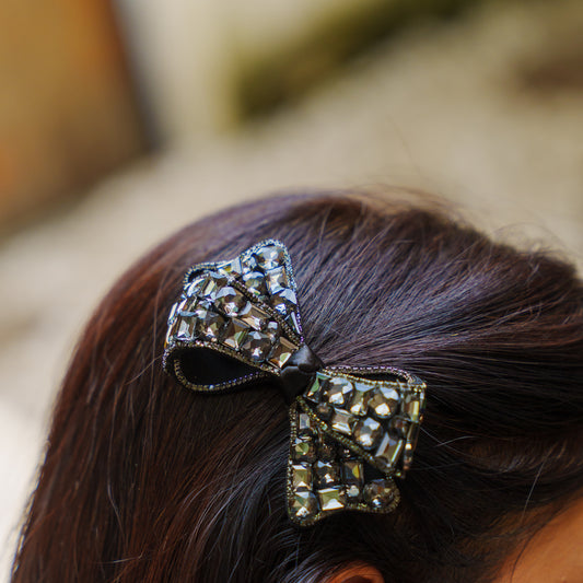 BUY 2 GET 1Twisted Solitaire Grey - Embellished Crystal Bow