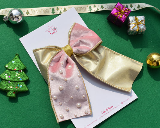Velvet Ribbon Bow- Blush Pink
