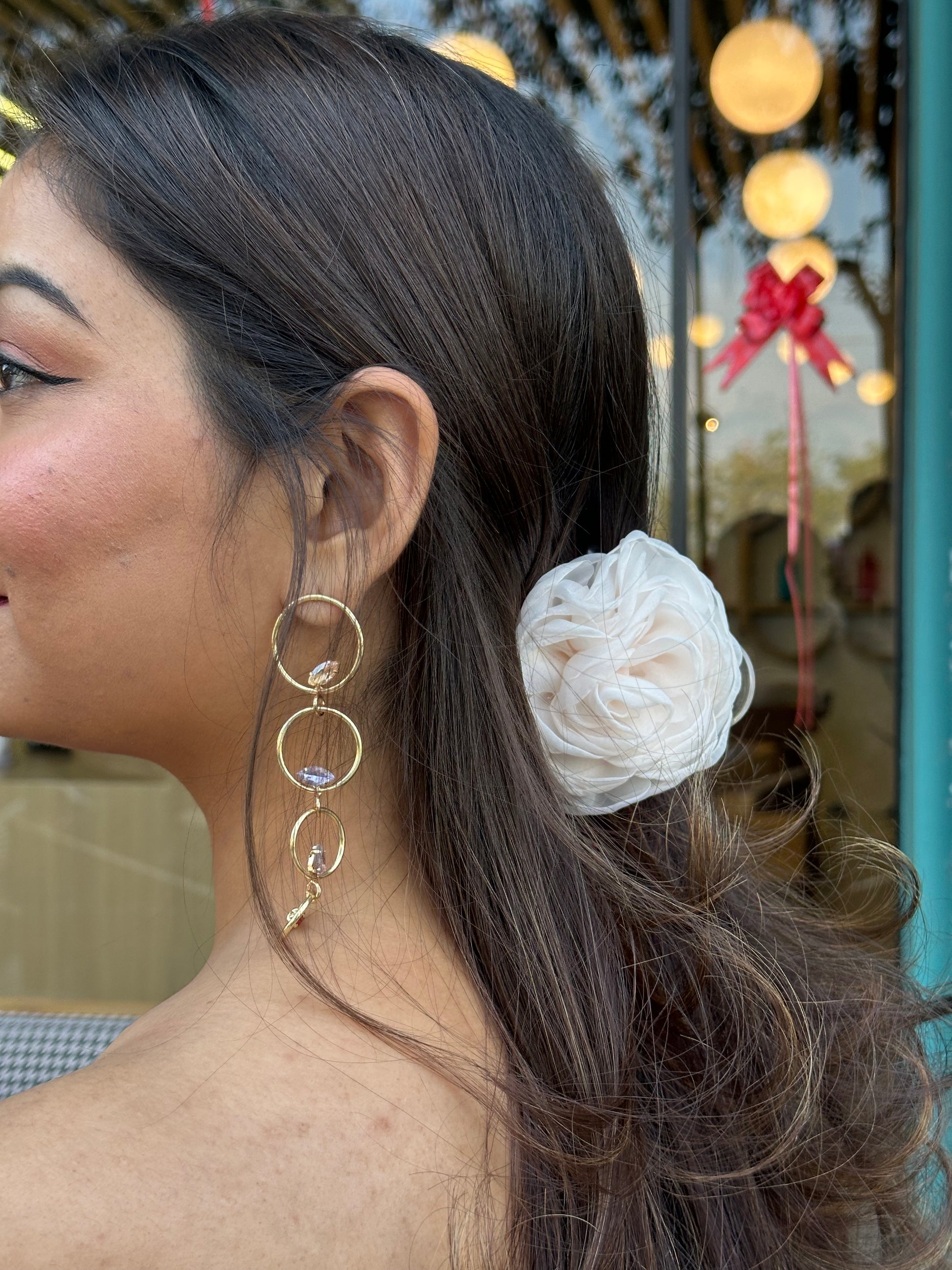 Adorable floral claw clip crafted from exquisite Organza fabric.This claw clip is suitable for holding enough for a half pony or thin hair , the clip is able to stay in all day through most activities.